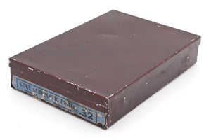 Accompanying this pistol is a Colt tin shipping box. Colt made a limited amount of these boxes in 1915. They were used for domestic and foreign shipments.The box is two pieces with the number of the pistol written on the bottom. It's painted a dark maroon on the outside and has the labels glued on in the inside.