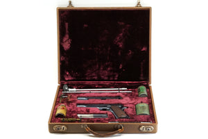 Abercrombie & Fitch would sell Colt Government Models with Conversion units in custom case that they would produce. This particular Conversion Unit was paired with Colt Government Model C196737 and sold together as a set to Dr. Gifford C. Ewing. Included in the case along with the Government Model and Conversion Unit is a bottle of Abercrombie & Fitch Genuine Rangoon Oil, Gun Cleaning Patches, Hoppe's 9 Powder Solvent, cleaning brushes and cleaning rods.