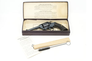 It is believed that the Pequeano Model was created by Colt as a means of merchandising the balance of parts from the discontinued 32 caliber Model B Police Positive. It was categorized internally at Colt as a "2nd Quality" weapon. The name Pequaeno means "The Little One" in Spanish. Most of the sales were to South and Central America, Puerto Rico and Philippine Islands with quantities also within the US. Some specimens were shipped to Thailand and sales were also made to the British Purchasing Commission at the early stages of WWII.