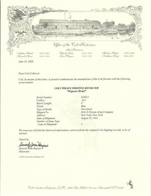 This Colt Police Positive was shipped to the H&D Folsom Arms Company in New York, New York on August 25th, 1941 in a 5 gun shipment.