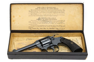This Police Positive is what is known as a "Pequeno Model". The barrel is marked "Police Positive B.32". It is finished in Colt's factory blue finish and has hard rubber grips. As of this writing only 32 caliber Pequano's have been observed. The observed serial number range for these pistols are in the 226,000 - 237,000 range.