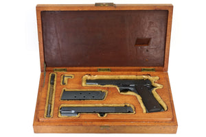 This pistol was found with the following case which is similar to other cases that Abercrombie & Fitch were producing at the time. It is inscribed on the front latch with "Frederick Wm. Kirby". Included in the case was also the .45-22 Conversion unit SN U-30 which can be found here.