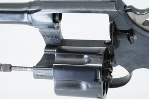 The revolver was built to utilize the 45ACP cartridge which is a rimless cartridge. Half moon or full moon clips are needed to load this revolver with the 45ACP cartridge.