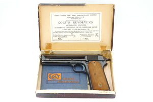Accompanying this pistol is the factory shipping box that is numbered to the pistol.  Factory boxes for the Colt 1905 are rare as not many 1905's were produced and most were utilized as working guns.