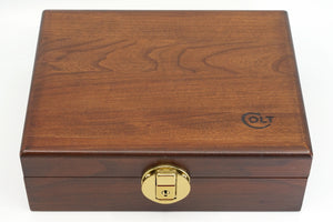 Also included factory faux wood box with the Colt logo laser etched to the bottom right corner. The interior is lined with a light blue velvet.