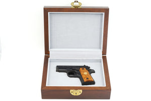 This Colt Mustang First edition was built in 1987. It features a blue finish and factory hardwood grips. Even though this serial number is MU0002, the first edition pistols were manufactured a few years after the initial production had started.
