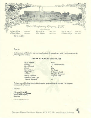 This Colt Police Positive Revolver was shipped to R. Kupperschmidt of Memphis, Tennessee on August 4th 1908 in a 15 gun shipment.
