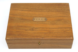 The arm comes in a very nice walnut presentation case with green felt lining and a brass plaque on the lid very neatly stamped "C.P.C.". A single magazine is included with the arm and the slide is serial numbered to the frame. Overall an extremely nice Model M with a very neat presentation and also a sad story to tell. Slide and frame are numbered alike.