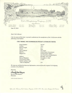 Colt 1903 Pocket Hammerless 32ACP SN:561387 MFG:1944 - Chandler Presentation