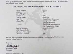 This Colt pistol is documented by serial number in John Brunner's book "The Colt Pocket Hammerless Automatic Pistols II" as having been the pistol issued to General Jonathan Mayhew Wainwright IV.