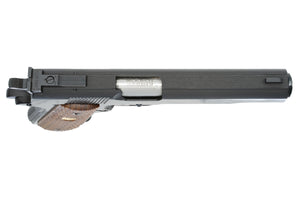 This Gold Cup National Match was produced in 1977 and is a series 70 Gold cup. It has Colt's blue finish, Elliason rear sight and wood checkered grips.