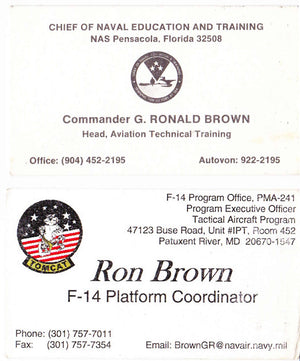 After retiring from the Navy, Commander Brown became an F-14 Platform Coordinator at Patuxent River, MD. Where he served another 20 years before retiring in Jacksonville, FL.
