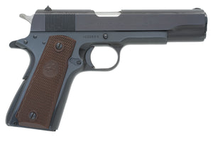 This Colt is considered to be a pre-70 series Government Model. They are finished in blue, top of slide is matte finished to prevent glare. The grips are plastic and commonly know during this period to shrink and contract.