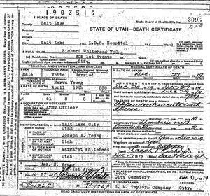 Brigadier General Richard Whitehead Young was born in the historic Beehive House Salt Lake City, April 19th 1858. He was son of Joseph Angel and Margaret Whitehead Young and the grandson of the famous Latter Day Saint, Politician and Mormon settler Brigham Young. At the age of 13 Richard began working in the freight office of the Utah Central Railroad and later att