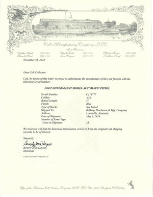 It was shipped May 6th, 1919 to the Belknap Hardware & Mfg. Company of Louisville Kentucky in a 25 gun shipment.