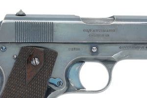 Colt's policy was to reprocess all salvageable pistols and components that have been improperly manufactured, produced in surplus or rejected for various reasons. This had been Colt's policy since the 1870's. It's commonly said that "Colt never threw anything away" which in the case of the subject pistol yields true. Duplicate serial numbered and rejected military pistols were often renumbered and converted to Government Model pistols.