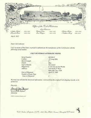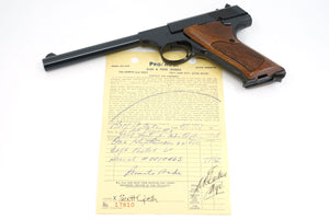 This pistil is accompanied by it's original 2 piece box, instruction sheet, warranty card and original invoice. It shows that the pistol was sold out of the Pro/MFG Gun & Tool works on 736 North 2nd West in Salt Lake City, Utah on 9/11/1969. The price paid for the pistol was $71.50.