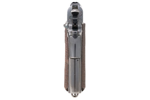 The Serial number on this pistol is located near the grips on the right side of the frame.