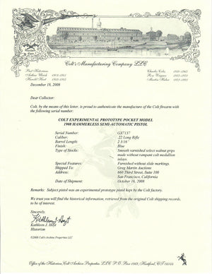 This Colt Experimental Prototype Pocket Model GX7137 was a post-war prototype and the next progression step of the 1908 Vest Pocket. Ultimately this design would not get much traction past this thus this was the end of the road for the model N.