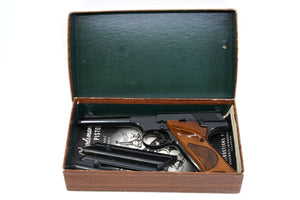 Accompanying this pistol is the correct 2-piece wood grain box, factory test target, 2 spare magazines and instruction booklet.