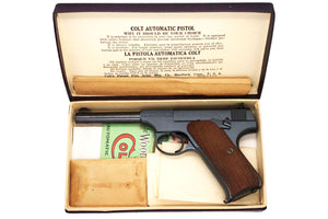 This Colt Woodsman is a Sport Model with a 4 1/2" straight tapered barrel and a fixed front sight. It has Colt's factory checkered walnut grips.
