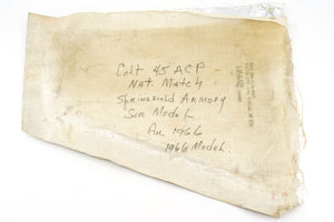 This Colt Camp Perry National Match was built in 1966 and shipped to Mr. Frank H. Leslie of Shaker Heights, Ohio. This pistol was part of the DCM (Now the CMP) sale that allowed NRA members to purchase leftover military and Camp Perry National Match pistols directly from the DCM.