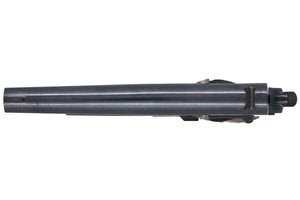 Right side of slide is marked with a Springfield eagle. The bolt number “2” is on left side, visible through the grasping groove port. A trapezoidal cut in the bottom middle of the slide has been expertly brased with a well fitting plug on both sides. Accompanied by an original Type-2 magazine with heavy 22 Long Rifle Cal. insert in a cut down regular 1911 magazine body that has been altered by having a recess stamped in one side for the loading assist button and the top edges crimped to hold the insert. Cal. 22 LR. The insert is further secured with 2 pins near the bottom of the magazine.